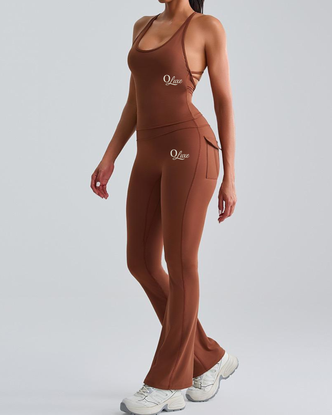 Grounded yet luxe, the Aura Luxe Set in Mocha is an earthy-toned essential for the modern woman. Its backless silhouette adds a striking touch, while the buttery-soft, stretch fabric sculpts and supports. Perfect for workouts, lounging, or layering, this set is designed to keep you moving with confidence and ease. A must-have for those who love minimal effort with maximum impact.